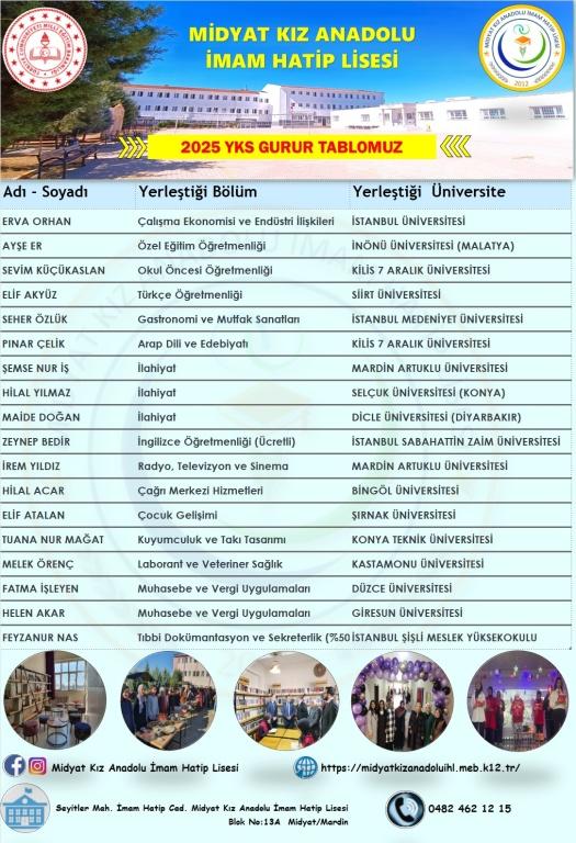 2025 YKS sürecinde ter döküp karşılığını alan ve bizleri gururlandıran öğrencilerimizi tebrik ediyor, üniversite hayatlarında başarılar diliyoruz..